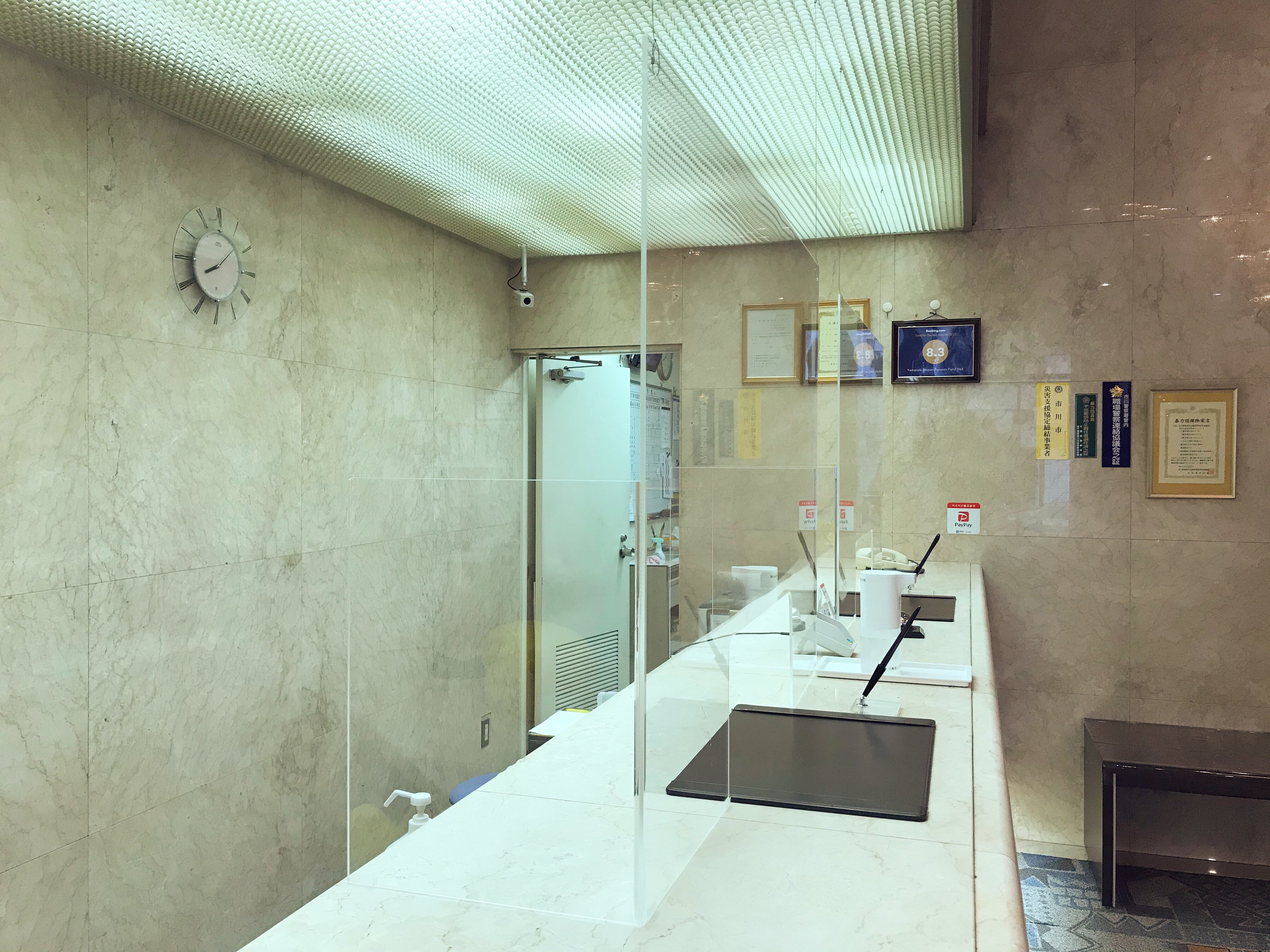 ・フロントカウンターには引き続き、アクリル板を設置して飛沫感染防止に努めております。